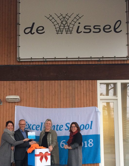 De Wissel in Luttelgeest is de eerste asielzoekersschool in Nederland die het predikaat heeft gekregen. De beide directieleden, Ella van Essen en Sandra van der Tempel, kregen het predicaat 'excellente school' vanochtend uitgereikt - in het bijzijn van wethouder Henk Wijnants - door mevrouw Meis, jurylid vanuit het ministerie van onderwijs (zie foto tweet Hans Wijnants hieronder).